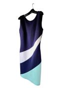 AI出品☆Rady☆光沢艶々煌とろみ総裏付ノースリーブワンピースアシンメトリー ストライプネイビーミントグリーンドレスM*伸縮素材