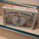 ピーターラビットのデザインが施されたWedgwood製の皿とカップのセット。