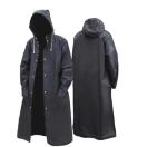 男女兼用ブラック防水レインコートロングフード付きレインジャケット-アウトドア用具