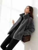 レディース 韓国風 冬用ジャケット - コーラルカラー 両面フリースコート フロントボタン留め&ポケット付き カジュアル 暖かいアウター 秋冬レイヤリング用 (韓国コレクション)