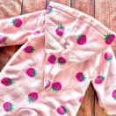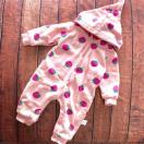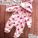 いちご柄のフード付きジャンプスーツ、80サイズ、フリース素材で暖かいです。