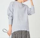 ゆったりとしたシルエットなので体のラインを拾いにくく、前後差をつけた長め丈がボトムを選ばず合わせやすいデザイン。