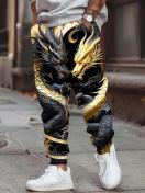 メンズ3Dドラゴンプリントジョガーパンツ、ドローストリング&ポケット付き - カジュアル、ストレッチポリエステル製スウェットパンツ、中国のドラゴンプリント、ファッションデザイン