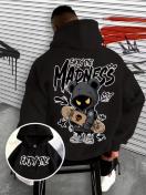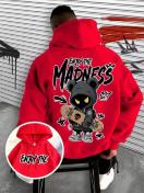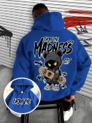 100%ポリエステル フード付きスウェットシャツ フロント/バックロゴプリント 調整可能なドローストリングフード&幾何学模様 - オールシーズンカジュアルセーター 洗濯機対応 レギュラーフィット ジャケット用