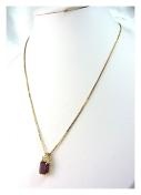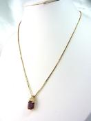 長方形のカットが施された石は、ルビーまたはガーネットのような濃い赤色。詳しい石が不明なのでカラーストーンとしてます 落ち着きと高級感を兼ね備えた色味で、ゴールドとの相性も抜群です。