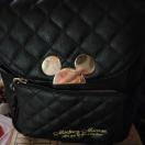 スタイリッシュなブラックカラーのリュックサックです。キルティングデザインの前面には、ゴールドの糸で「Mickey Mouse」の刺繍が施されており、さりげなく可愛らしさをアピールします。