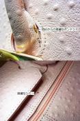 オーストリッチ型押しのレザーに、柔らかくも華やかなピンクが使用されています。派手すぎず、上品で女性らしい印象です。