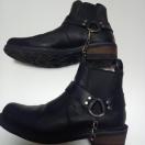レザー製のチェーン付きサイドゴアブーツ、約5cmヒールでスタイリッシュなデザイン。