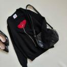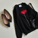 赤の花柄の刺繍が華やかなニット。