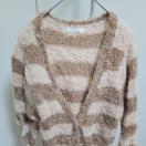 フワフワしたベージュとブラウンのストライプデザインの長袖カーディガン。