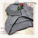 ┗千鳥格子とヘリンボーンをミックスした独自のデザインが魅力的なハイネックニットトップス