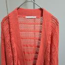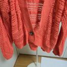 レース編みカーディガン、オープンフロントスタイルで、1つのボタン付き。