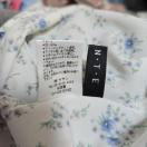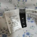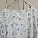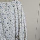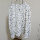 ホワイトの花柄デザインの長袖ブラウス、バックにボタン付きの開口部があります。