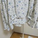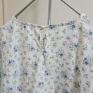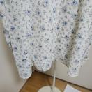 このシャツは、白地に青い花柄のデザインが特徴で、春夏にぴったりの爽やかな印象を与えます。