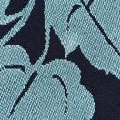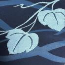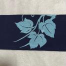 紺色の地に水色で蔦の葉が施された名古屋帯です。