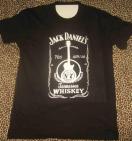 ジャックダニエルのウイスキーロゴがプリントされたカジュアルな黒Tシャツ。締切日時