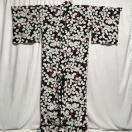 美品 洗える 夏 着物 小紋 単衣 黒地 萩 バチ襟 ヒロミチ ナカノ