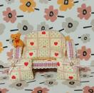 ート模様の可愛いミニチュアソファセット、テディベア付き。