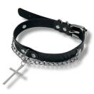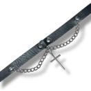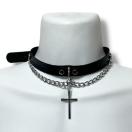フロントにシルバーのシンプルなクロスとクロス付いた合皮チョーカー