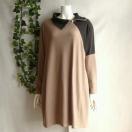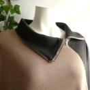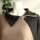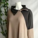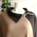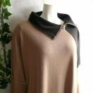 ジップ使いの襟が印象的な、配色切替デザインの大人のチュニックワンピースです。