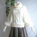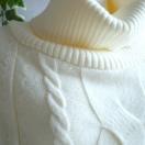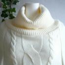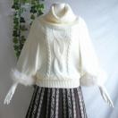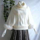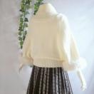 フェミニンで華やかな印象の、ポンチョ風オフタートルネックニットセーターです。