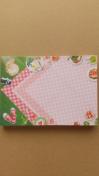 @緑色の芝生に赤いレジャーシートを広げた、可愛いデザインのメモ帳です。