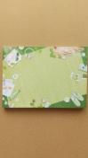 Aグリーンを基調に、クローバーやお花、日の光など、綺麗なイラストが爽やかでお洒落なメモ帳です。