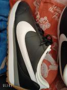 ナイキのスニーカーを出品いたします。黒を基調としたボディに、サイドの白いスウッシュが映えるクラシックなデザインです。ソールは白とグレーの層に、ヴィンテージ感のあるガムソールが組み合わされています。見た限り、ほとんど使用感がなく、新品に近い非常に良好な状態です。アッパー、ソールともに目立つ汚れや傷は見当たらず、到着後すぐに気持ち良く履いていただけます。カジュアルな普段使いはもちろん、様々なファッションに合わせやすい一足です。サイズ表記が画像からは確認できませんでしたが、一般的な成人男性または女性向けサイズと推測されます。お手持ちの靴と比較してご検討ください。画像にて商品の状態をよくご確認いただき、ご納得の上での入札をお願いいたします。締切日時