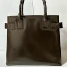 GUCCI Logo Embossed Patent Leather Enamel Tote Bag Handbag Brown