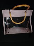 ハンドルが竹で本体は透明なオシャレなハンドバッグです!