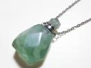 天然石グリーンフローライトを使用した、美しいファセットカットのアロマボトルペンダントネックレスです。光の角度によって様々な表情を見せる、透明感のあるグリーンのフローライトが胸元を上品に彩ります。