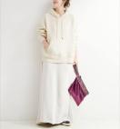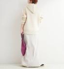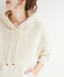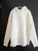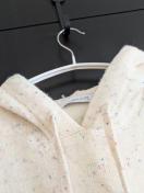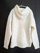 小さめのネップが散りばめられた糸とポリエステル糸を接結した、ほんのり厚みのある素材でお作りしたフードプルオーバーです。