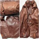 ■当方主観ではこの手の天然革仕様のUSEDレザーとしてよくある程度に感じますが、以下の革風合いと右袖ボタンが1個欠品しているので一応(やや傷汚れ)としてます
