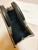 FURLAのベージュとブラックのトートバッグ、キャンバスとレザーのコンビ。