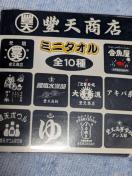 豊天商店のミニタオル、金魚屋柄です。和風で可愛らしい金魚のデザインが特徴で、コレクションにもおすすめです。画像にありますパッケージの「全10種」のうちの一つとなります。