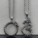 爆ヤス890円★2点セット ファッション ダブルドラゴン 太チェーン ユニセックス - ステンレススチール 防水・防錆・変色防止