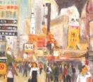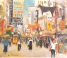抽象表現主義から具象画に転向して久しく、身近な街景、ア−バンライフを主題に明快な筆致で描いております。モバオクで "袖振り合うも多生の縁" 宜しくお願い致します。