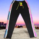 ZUMBA のサイドラインスウェットパンツ、Mサイズです。ブラックの生地にカラフルなサイドラインが特徴的で、トレーニングやフィットネスに最適です。