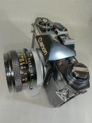 古いキャノンの、シャッター優先AEのフィルムカメラ