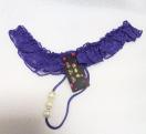 レース素材の紫色のTバック、パール装飾付きでセクシーなデザイン。