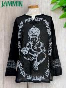 頭が象の神様ガネーシャ神のプリント入りの長袖クルタです。