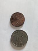 デンマークの1956年10オーレと1973年の5オーレ硬貨です、画像のお品限りです。