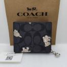 人気のシグネチャー柄にかわいいワンちゃんのプリント刺繍が施され、コーチのメタルロゴが入ったキュートでオシャレな二つ折り財布です。