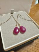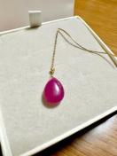 希少なワインレッドカラーのドロップシェイプの天然石がきれいなお品です。