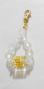 円柱の水晶に六字真言が金彫りされた物とフロスト水晶で作りました。