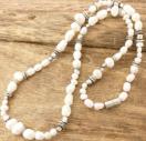 様々な形状の淡水パールにシルバーコーティングがされたブラスビーズを組み合わせたネックレスです。