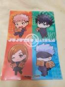 クリアファイルには、銀だこコラボレーションの描き下ろしイラストで、虎杖悠仁、伏黒恵、釘崎野薔薇、五条悟がたい焼きを持っているデザインです。