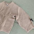ケーブル編みデザインのベージュニットセーター、95cmサイズ、バルーンスリーブスタイル。