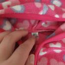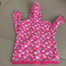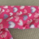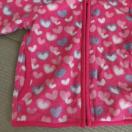 フリース素材のピンクのハート柄アウター、95サイズ、フード付きで暖かい。