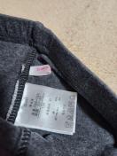 ・グレーの無地、裾にシャーリングとドット柄のリボン付き。記載サイズ130(125〜135)